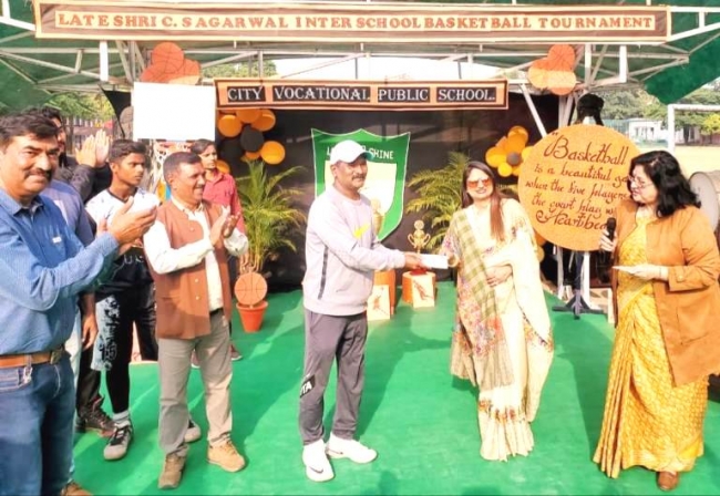 Besides academics, sports are also considered as an integral part of the overall development. So in the fond memory of the revered founder Late Shri C S Agarwal the school organized an Interschool Basketball Tournament. The Chief Guest of the day Mr. Manish Bansal, Municipal Commissioner, Meerut and the Guest of Honour Dr.Sarojini Agarwal, Chairperson of the institution was welcomed with a green bouquet by the Director Mr. Prem Mehta and Principal Ms. Anita Tripathi. The event commenced by paying hearty homage to the founder Late Shri C S Agarwal followed by kindling of lamp.